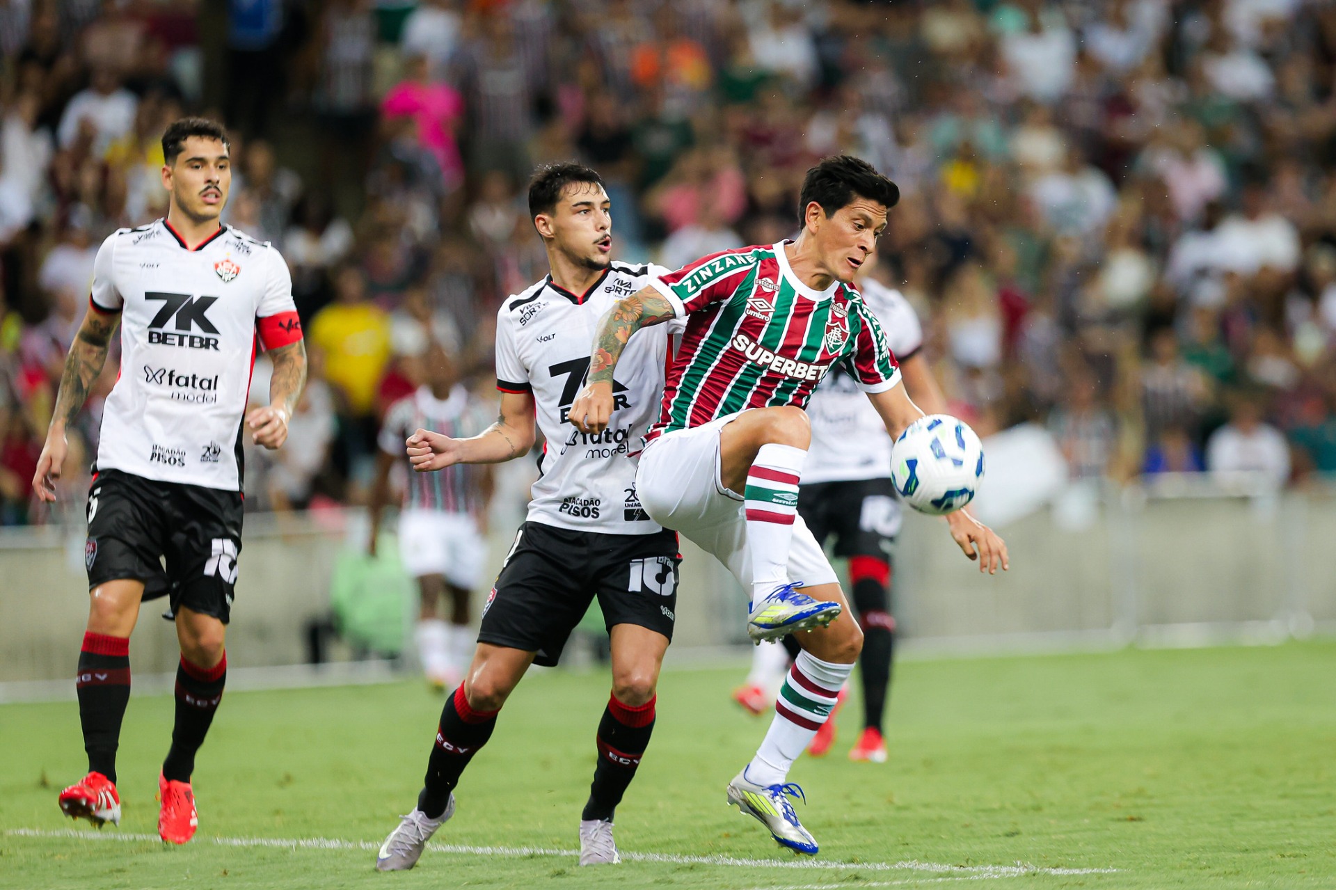 Em um jogo que parecia sob controle, o Fluminense apenas empatou com o Vitória por 1 a 1, fora de casa, em partida válida pelo Campeonato Brasileiro. Com Renato Gaúcho no comando, o Tricolor fez um bom primeiro tempo, com boa movimentação ofensiva e abriu o placar com Cano, que marcou de cabeça após uma bela jogada pela esquerda.
